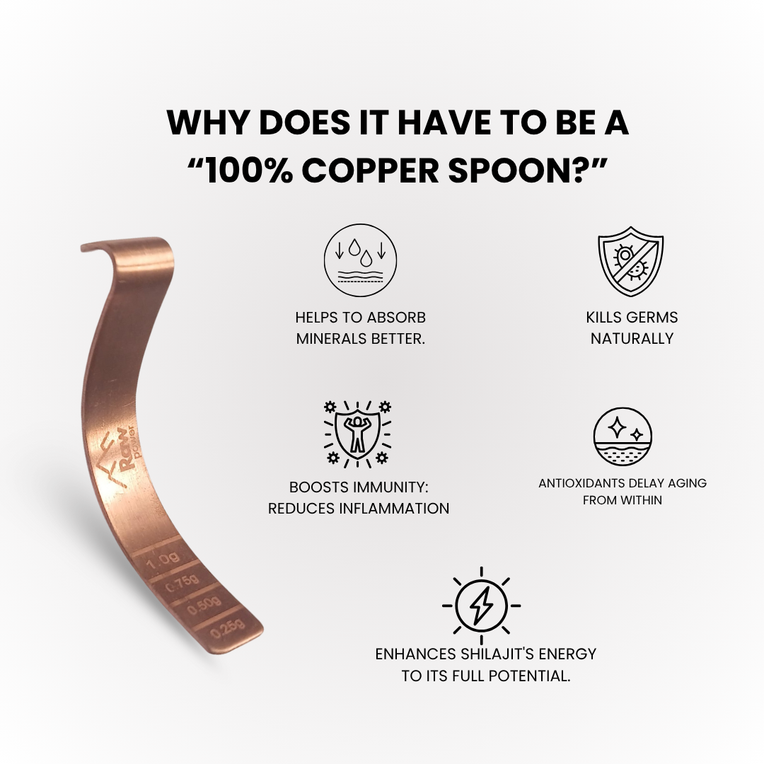 A real copper spoon to measure your daily Shilajit dose with precision and keep the resin pure.